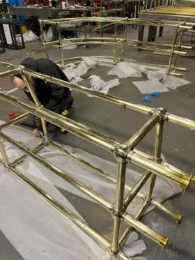 Each item was fabricated to bespoke specification, combining high-quality materials with a variety of advanced techniques including precision welding, cutting, bending and finishing – to ensure an impeccable result. The use of Brass accents throughout the space added a layer of sophistication and elegance that perfectly complements the venue’s modern, upscale character.