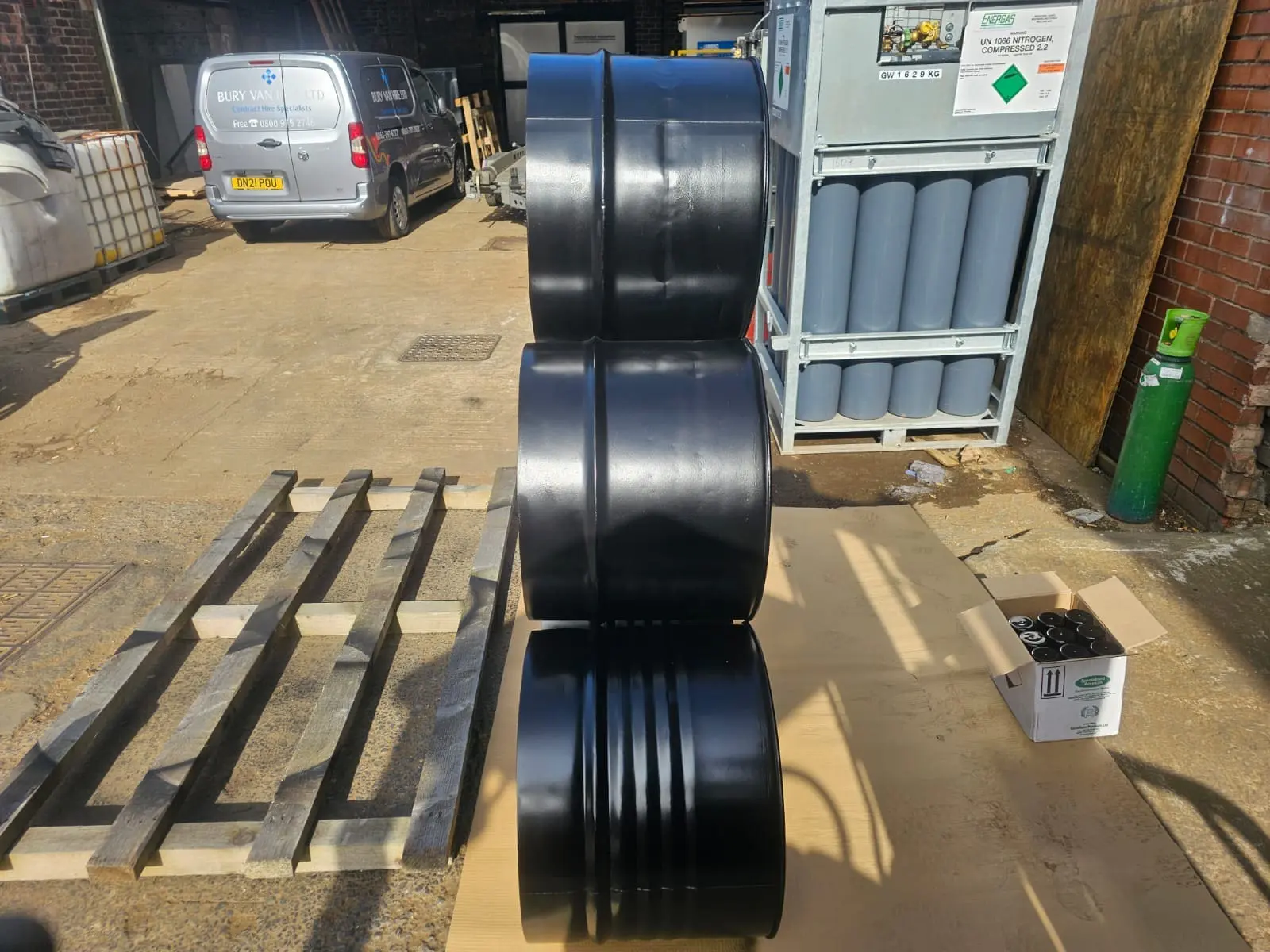 • Cut in half, welded together and painted